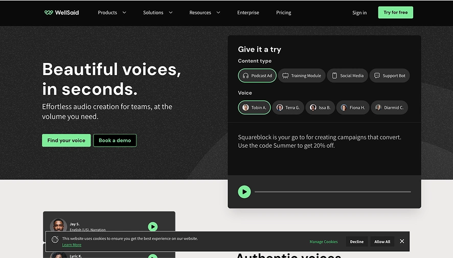 #2 WellSaid Labs — Profesyonel Seslendirme Üretimi için FreeTTS Alternatifi